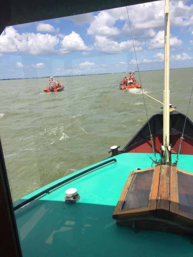 Beide reddingboten van Reddingstation Wijdenes zijn zondagmiddag ingezet voor een pas gekochte oude sleper met motorproblemen, midden op het Markermeer.