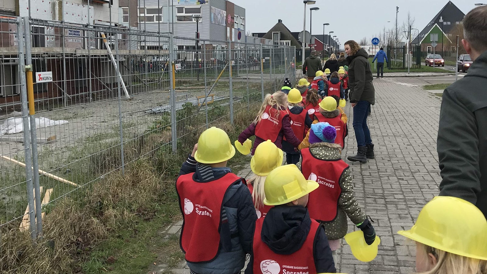 Een schooldag om niet snel te vergeten voor de kleuters van basisschool de Socrates gevestigd in de wijk Bangert-Oosterpolder te Zwaag. De komende maanden staat daar het thema bouw centraal, in verband met de start van het bouwen van het nieuwe schoolgebouw. Speciaal voor deze bijzondere mijlpaal, organiseerde projectmanager Valerie Boots van USP Vastgoed voor maar liefst 180 kleuters een bezoek aan de bouwplaats.