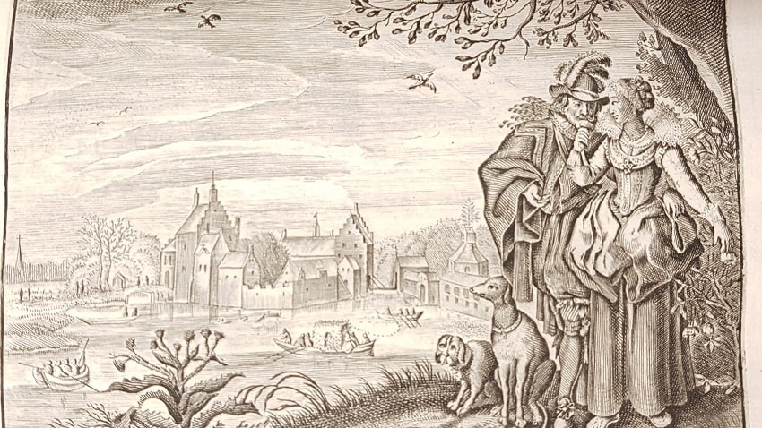 Foto 1: Een jong paar uit het werk van Jacob Cats ‘s Werelts begin, midden, eynde, beslooten in den trou-ring, met den proef-steen van den selven uit 1637