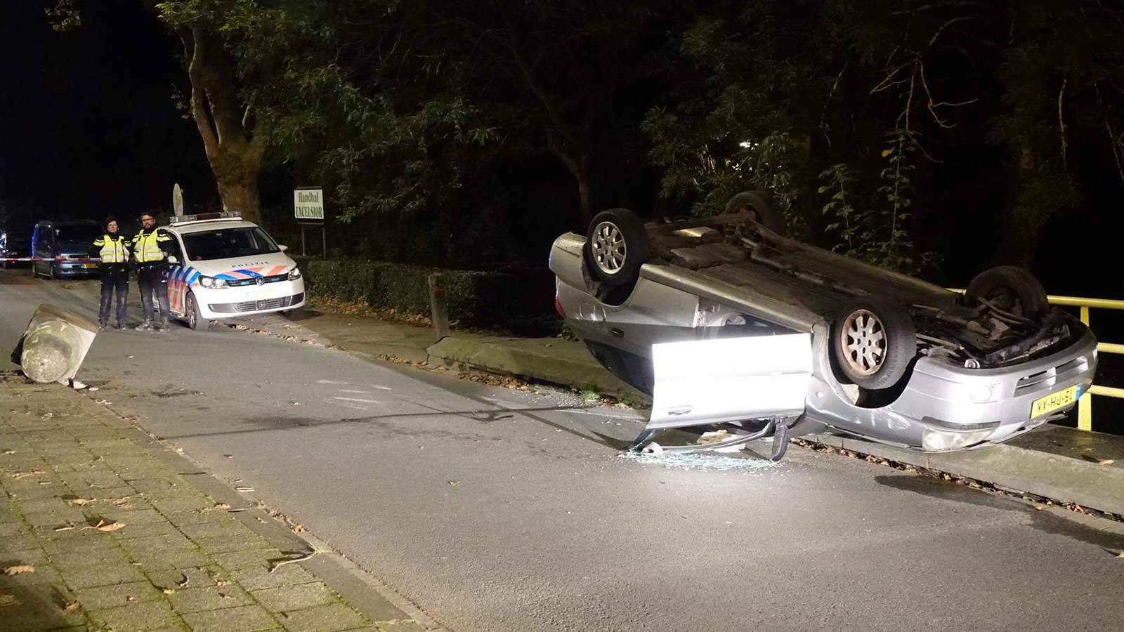 HOORNGIDS | In de nacht van zaterdag op zondag omstreeks twee uur is op de Raadhuislaan in Grootebroek een auto op z’n kop geraakt.