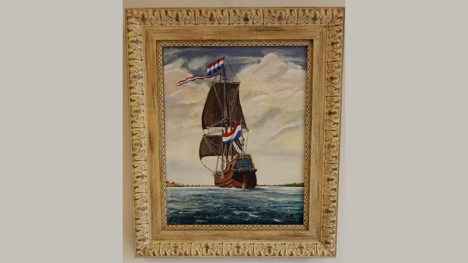 Foto: Nel Tiepel van Debutade schilderde een Oost-Indiëvaarder onder vol zeil