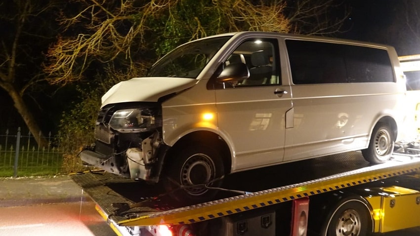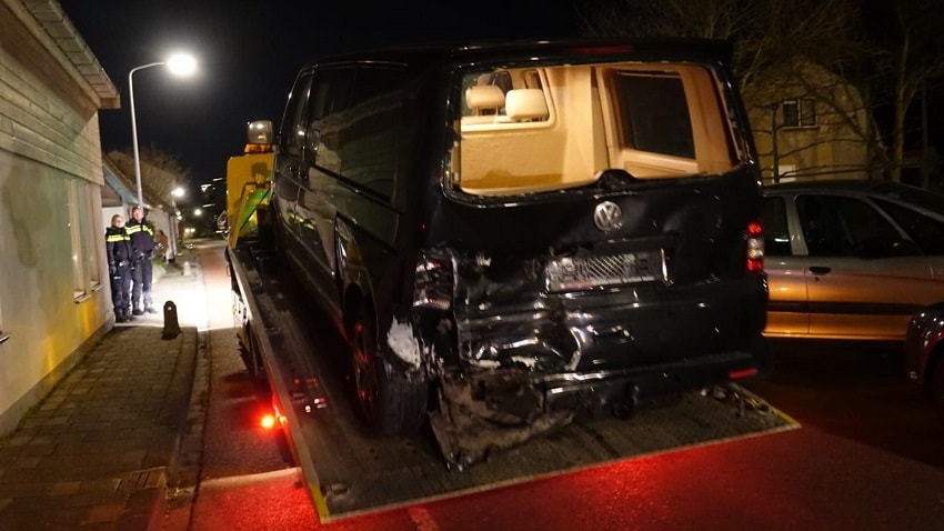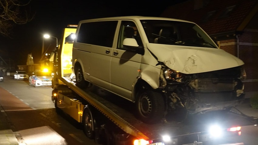 HOORNGIDS | Maandagavond 23 maart omstreeks kwart voor negen is op het Oosteinde in Berkhout een wit busje bovenop een geparkeerde zwarte bus geklapt. De botsing was zo heftig, dat het busje met de zwarte bus doorschoten naar de volgende geparkeerde auto. Ook dat was een zwarte auto. Alledrie de auto’s zijn total loss. De twee busjes gingen met berger mee.