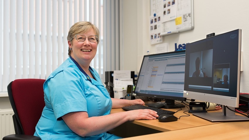 Het ziekenhuis onderzoekt al langer hoe technologie kan helpen in de zorg aan patiënten. Het coronavirus heeft ervoor gezorgd dat dit in een stroomversnelling is gekomen. Nu het Dijklander Ziekenhuis de poliklinische zorg weer stapsgewijs opstart, zijn videoconsulten een welkome aanvulling. Meerwaarde is dat zorgverlener en patiënt elkaar kunnen zien en dat de patiënt niet de reis naar het ziekenhuis hoeft te maken. Logopediste Franka de Groot – van Bockxmeer: “Door het coronavirus kunnen we onze patiënten niet altijd fysiek zien op de polikliniek. Ik werk veel met mensen met een taal- of spraakstoornis waardoor praten moeilijk gaat. Telefoneren is voor hen erg moeilijk, omdat ze de ander niet zien en daardoor het gevoel hebben snel te moeten praten. Dankzij een videoconsult is er meer rust in de gesprekken doordat je elkaar kunt zien. Ik kan – net als in de behandelkamer – echt met mensen oefenen. Dat gaat over de telefoon niet.”