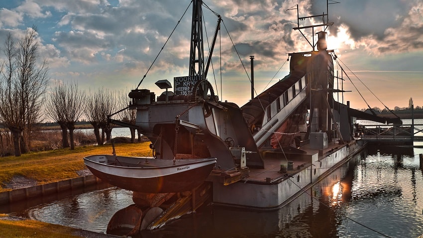 Foto baggermolen bij zonsondergang is gemaakt door fotograaf Kenneth Stamp