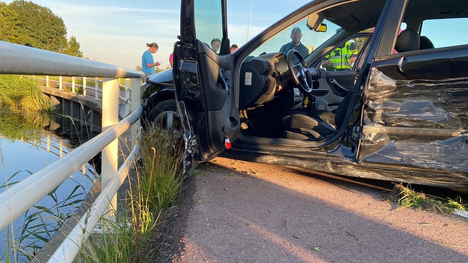 Twee auto`s kwamen met elkaar in botsing op de kruising. Een van de auto’s kwam tot stilstand tegen de brugleuning. Er vielen geen gewonden maar de schade is groot. Beide auto`s konden niet meer rijden. Zij moesten worden geborgen.