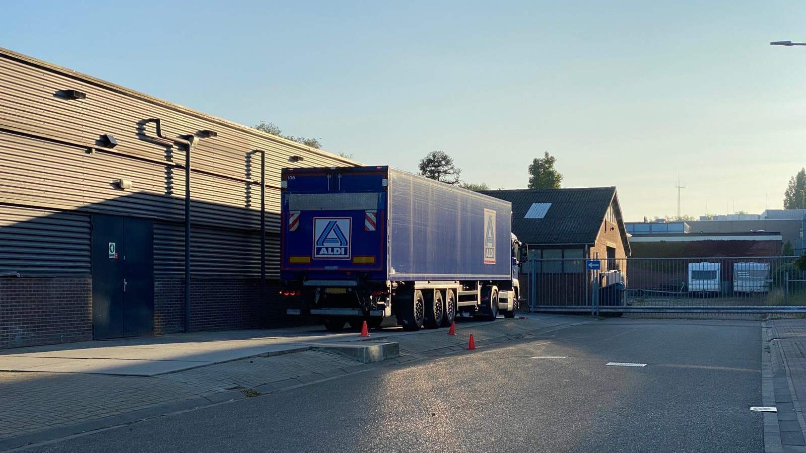 Pas bij de laad- en losplaats, honderden meters verderop, kon de vrachtwagenchauffeur op het ongeval worden geattendeerd.