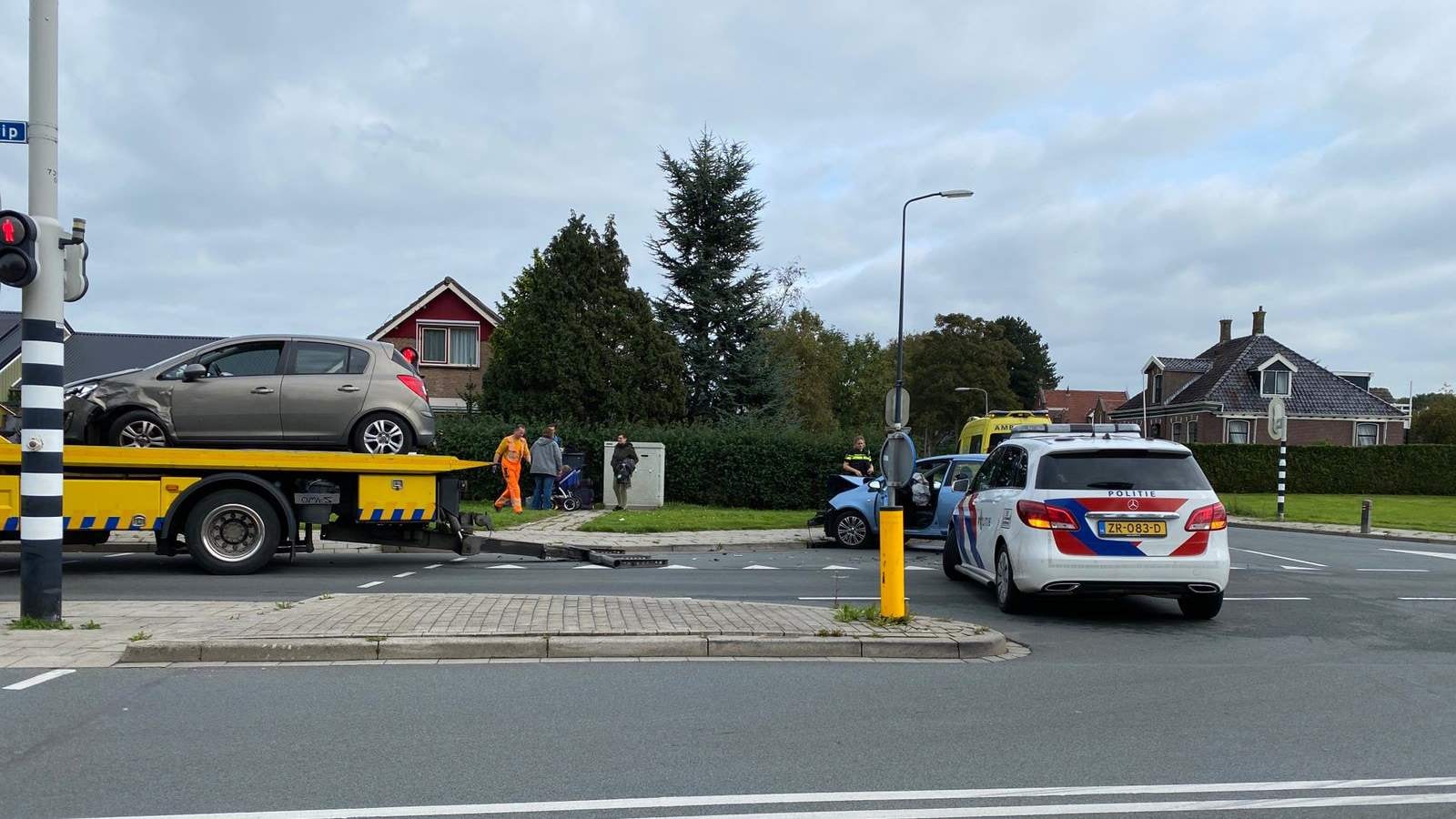 Twee auto’s op elkaar, waarschijnlijk door een voorrangsfout. Eén persoon is meegenomen naar het ziekenhuis voor controle.