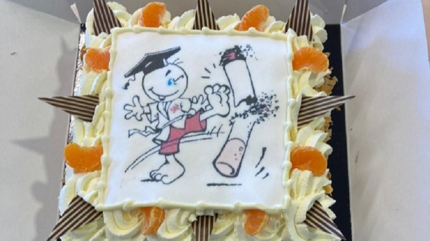 Foto: Taart voor 12 medewerkers die samen zijn gestopt met roken