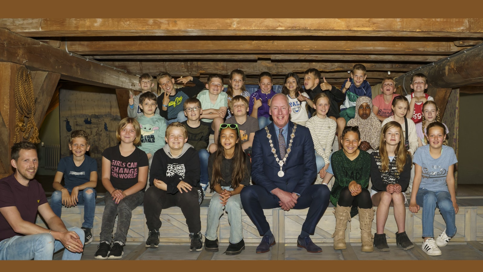 Leerlingen van Het Driespan samen met de burgemeester van Enkhuizen, foto Studio Merike