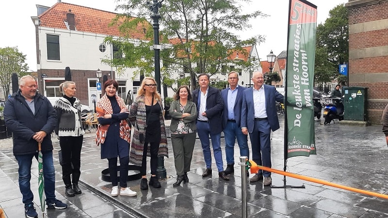 Wethouder René Assendelft knipte het jubileumlint door, samen met Annet Kwantes van de ondernemersvereniging en Rita Tromp, voorzitter van De Hoornse Straatjes. Het jubileum wordt gevierd in het weekend van vrijdag 23 tot en met Superkoopzondag 25 september en wordt onderstreept met muziek, reuring, gezelligheid, traktaties en mooie winkelacties.