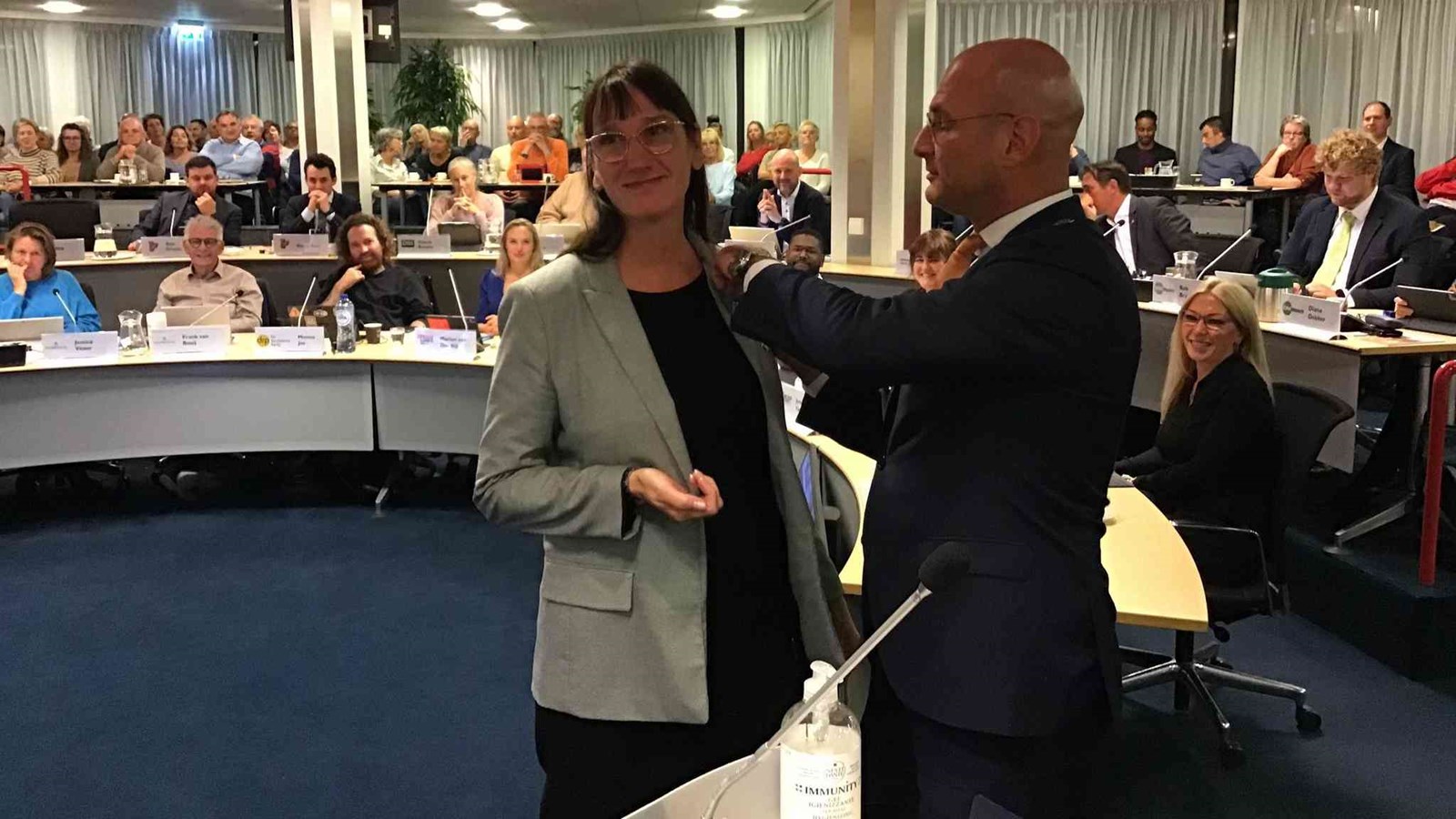 Voorafgaand aan de raadsvergadering werd wethouder Karin Hakhoff (ÉénHoorn) door burgemeester Jan Nieuwenburg verrast met een korte toespraak waarin duidelijk werd gemaakt dat het de Majesteit heeft behaagd haar te onderscheiden als lid in de orde van Oranje-Nassau.