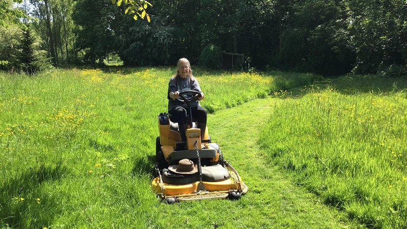 • Marijcke Faas op zitmaaier in De Verteltuin