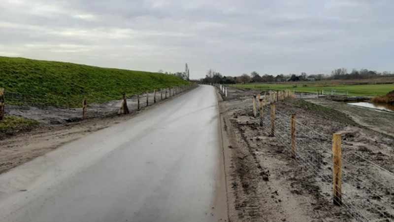 HOORNGIDS REGIO | De weg tussen Scharwoude en Schardam was lange tijd niet toegankelijk, omdat hij door de werkzaamheden was beschadigd. Het gedeelte tussen de oude dijkdoorbraak De Weel en gemaal C. Mantel is inmiddels volledig vernieuwd en de weg is sinds 15 december weer toegankelijk.